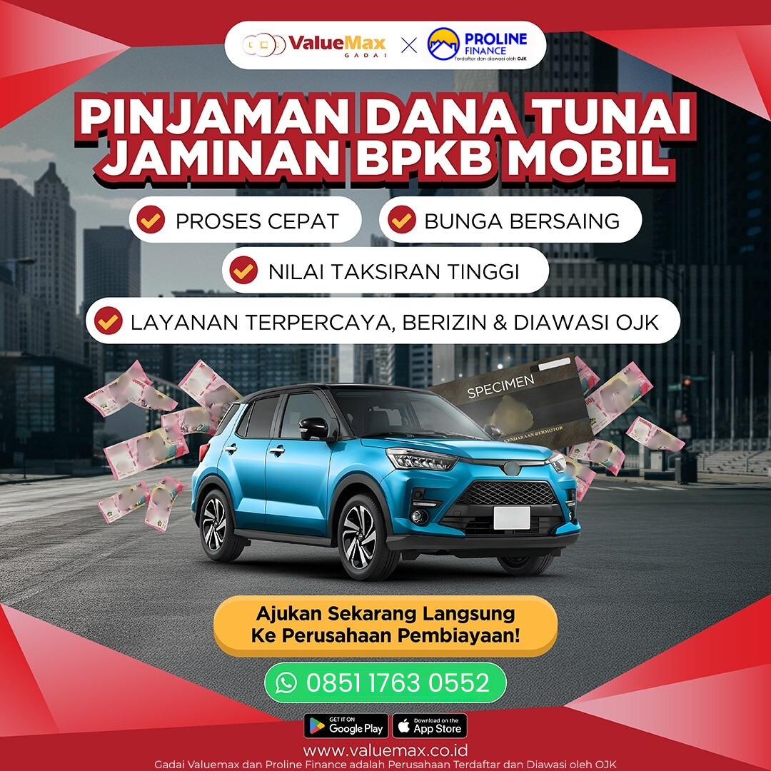 ValueMax bekerja sama dengan Proline Finance menghadirkan solusi pembiayaan BPKB berbasis fidusia. Proses cepat, aman, dan kendaraan tetap dapat digunakan.